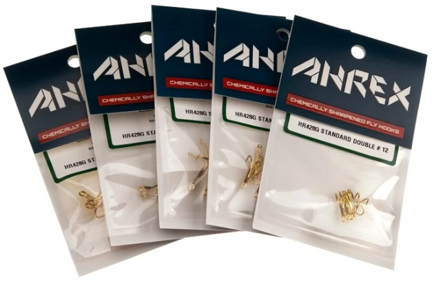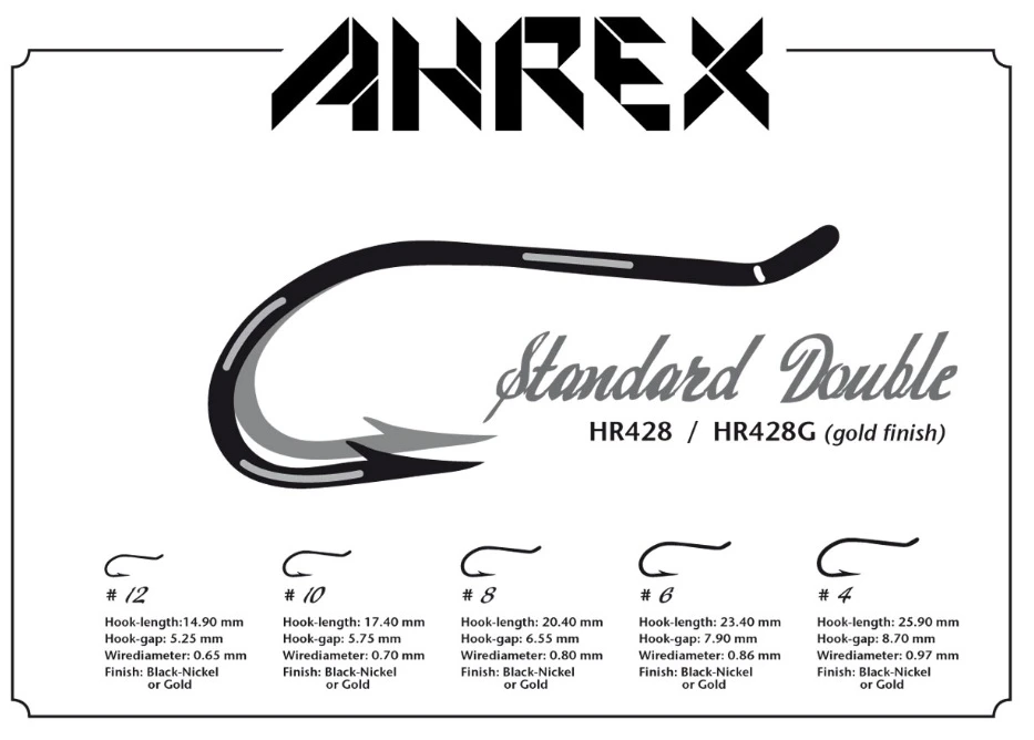 De Ahrex HR428G Tying Double Salmon & Steelhead Hook is een dubbele haak met een korte haaksteel. Ideaal om compacte doubles op te binden. De HR428G is afgewekt in het goud.