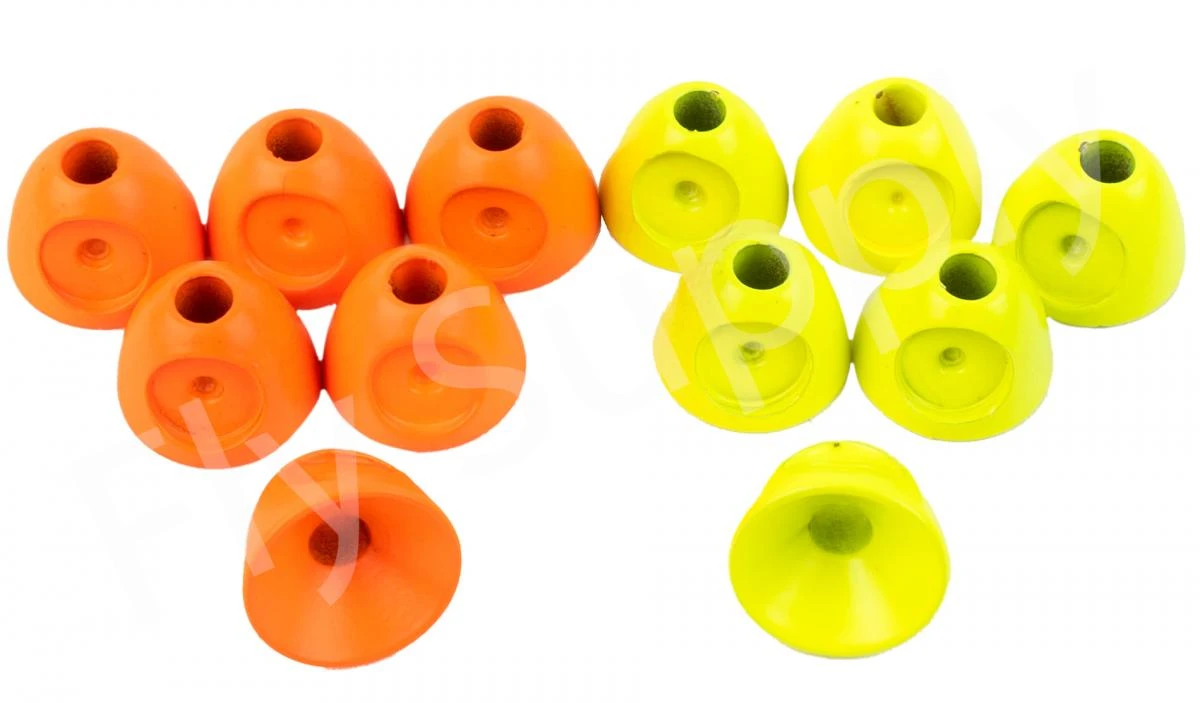 These Brass X-Eyed 11mm Coneheads are available in Fluo Orange and Fluo Yellow.
