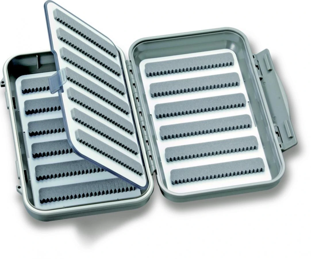 De C&F 19 Row With Flip Waterproof Medium Fly Case – CF-25676 is uitgevoerd met drie Micro Slit Foam wanden en een wand met vlak foam, met zes openingen aan de binnenkant van de doos en zeven openingen op het scharnierende gedeelte. De C&F 19 Row With Flip Waterproof Medium Fly Case – CF-25676 is uitstekend te gebruiken voor medium formaat droge vliegen en nimfen.