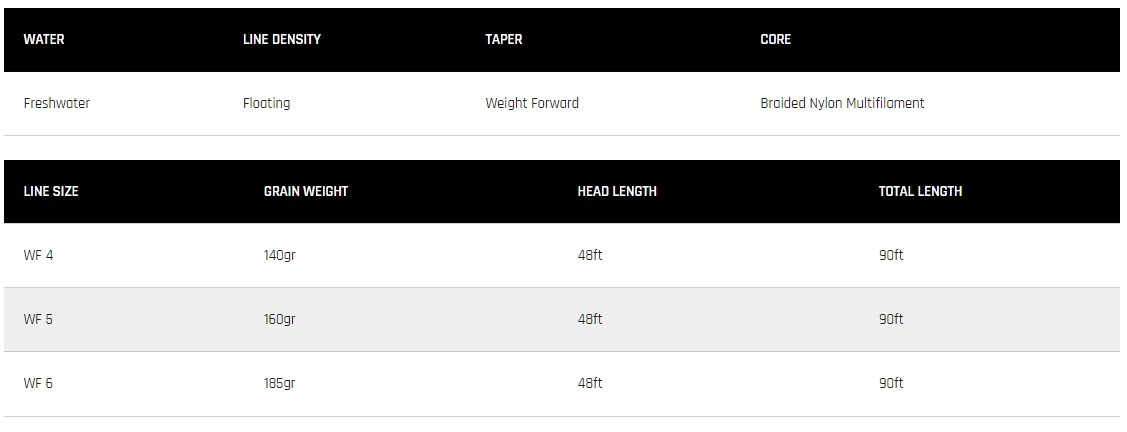 Deze vliegenlijn heeft een hoger gewicht dan normaal, zodat ook bij het werpen over korte afstanden de vliegenhengel goed geladen wordt. De mosgroene en vaalgele kleurverandering helpt de vliegvisser om de lijn te volgen en de juiste afstand te bepalen. De vliegenlijn is al aan beide uiteinden voorzien van lussen, zodat het bevestigen van leader en backing een fluitje van een cent is.