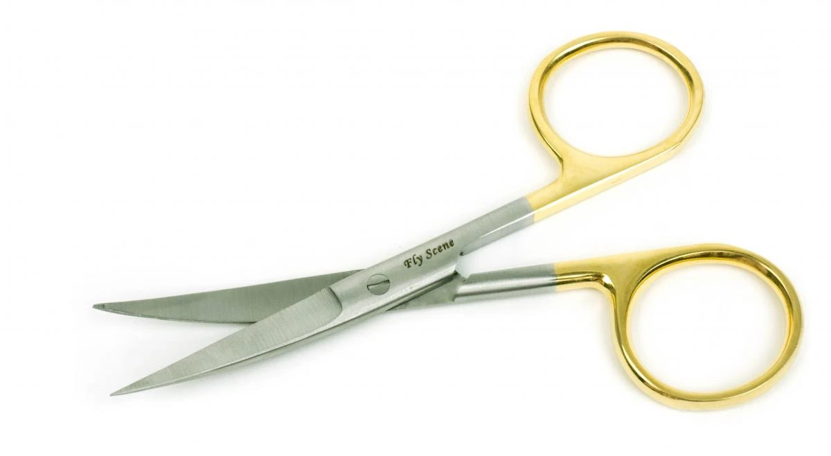 Deze allround schaar met gebogen punt is ideaal voor het knippen van bucktail en ander grover materiaal. Voorzien van grote loops voor de vingers.