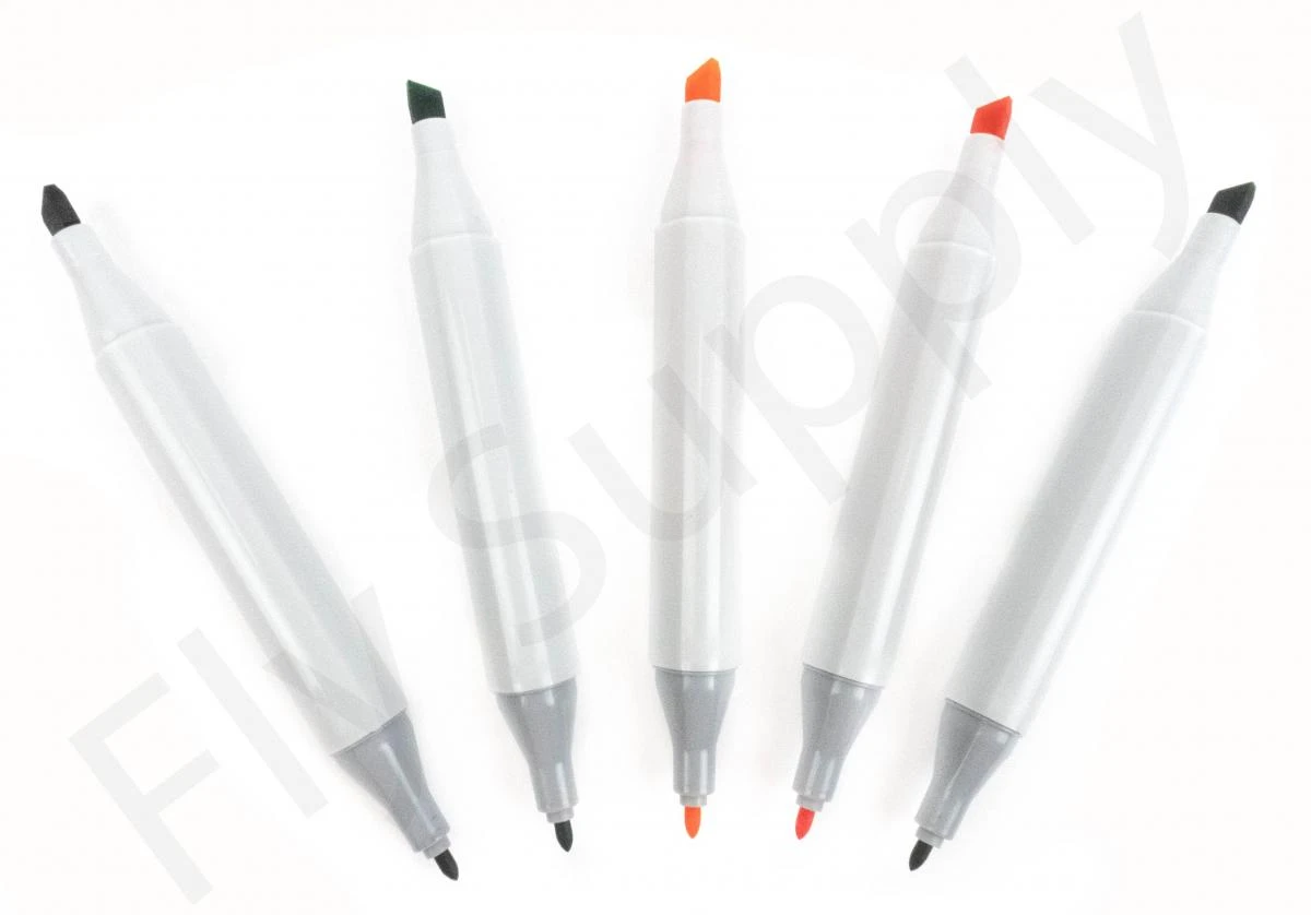 Deze nieuwe permanente stiften hebben twee punten: een fijne punt en een schuine, bredere punt.