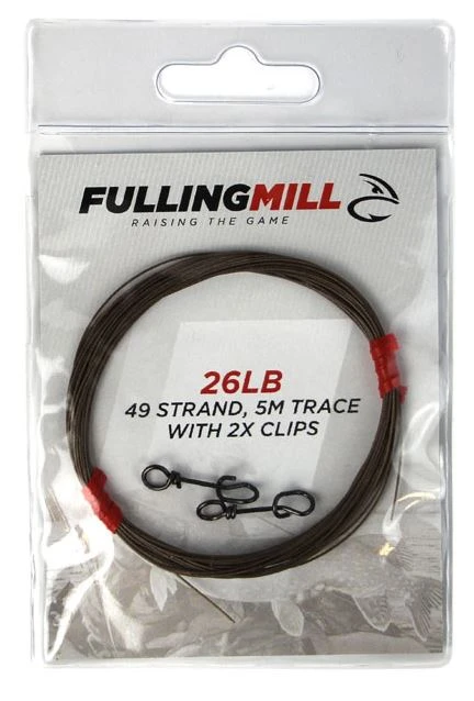 De Fulling Mill Trace Wire 26lb 49 Strand is een doe-het-zelf onderlijnpakket, dat een geweldige manier is voor vliegvissers om te experimenteren met hun eigen, op maat gemaakte onderlijnen. Geleverd worden twee premium fastach clips samen met een 5 meter lengte van Fulling Mill’s 49 fibers, nylon gecoate stalen onderlijn, gewoon knippen op de door jou gewenste lengte en bevestig vol vertrouwen jouw favoriete vlieg.