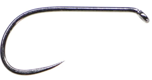 De Fulling Mill Ultimate Dry Fly Barbless Black Nickel Hook (FM-5050) is uitgevoerd met een neerwaarts gebogen haakoog, ze is 1x ruim qua haakbocht, weerhaakloos, vervaardigd van standaard metaaldraad en uitgevoerd met een zwart nikkel finish. De haak is beschikbaar in de haakmaten 12, 14, 16, 18 en 20.