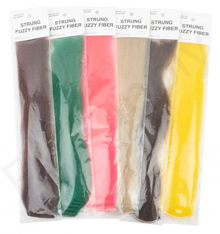 Soft, thin, crimped fiber strung like saddle hackle or marabou that is a superior fiber to wool. Contains approximately 2″ of strung fibers, 10″ in length.