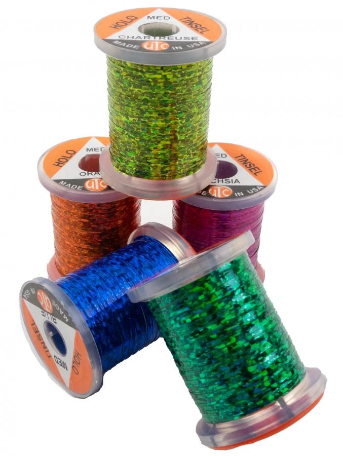 Het Holographic Tinsel Medium is een zeer helder gekleurd, holografisch tinsel in verschillende kleuren om mee te ribben of om lichaampjes mee te vormen. Het tinsel voorziet elke kunstvlieg van extra flash en glitter.