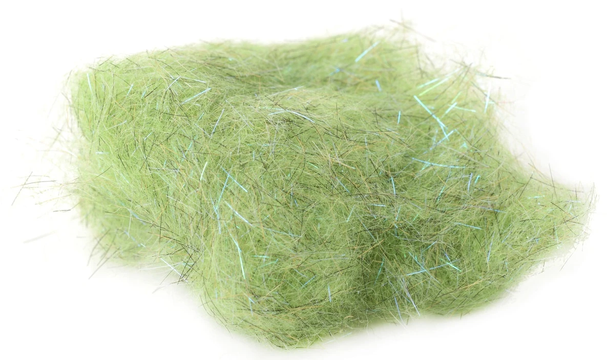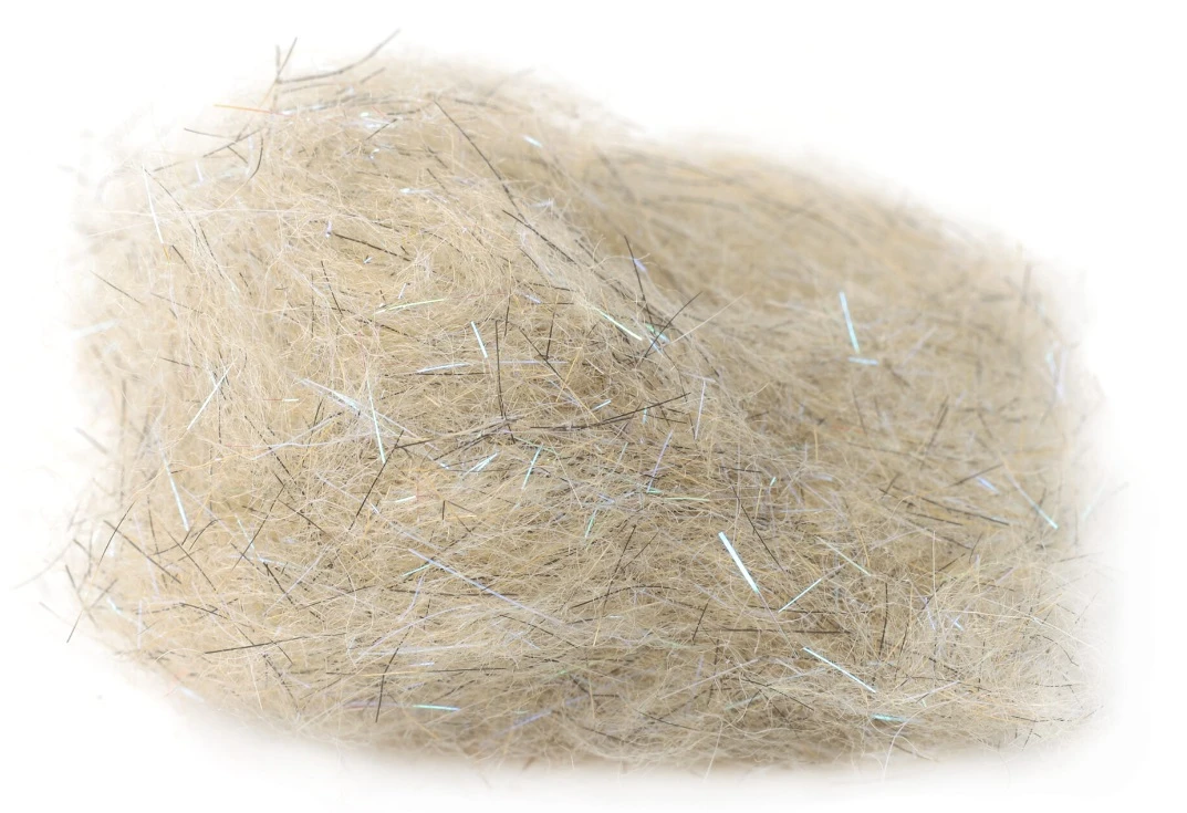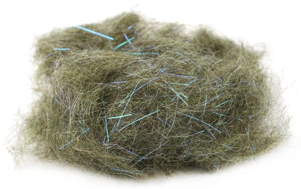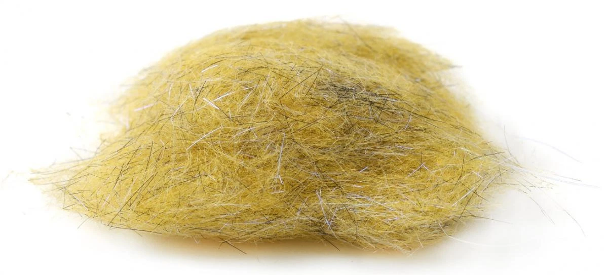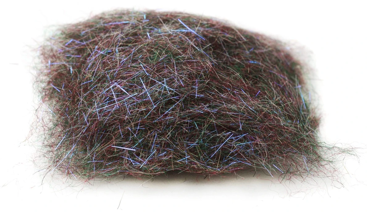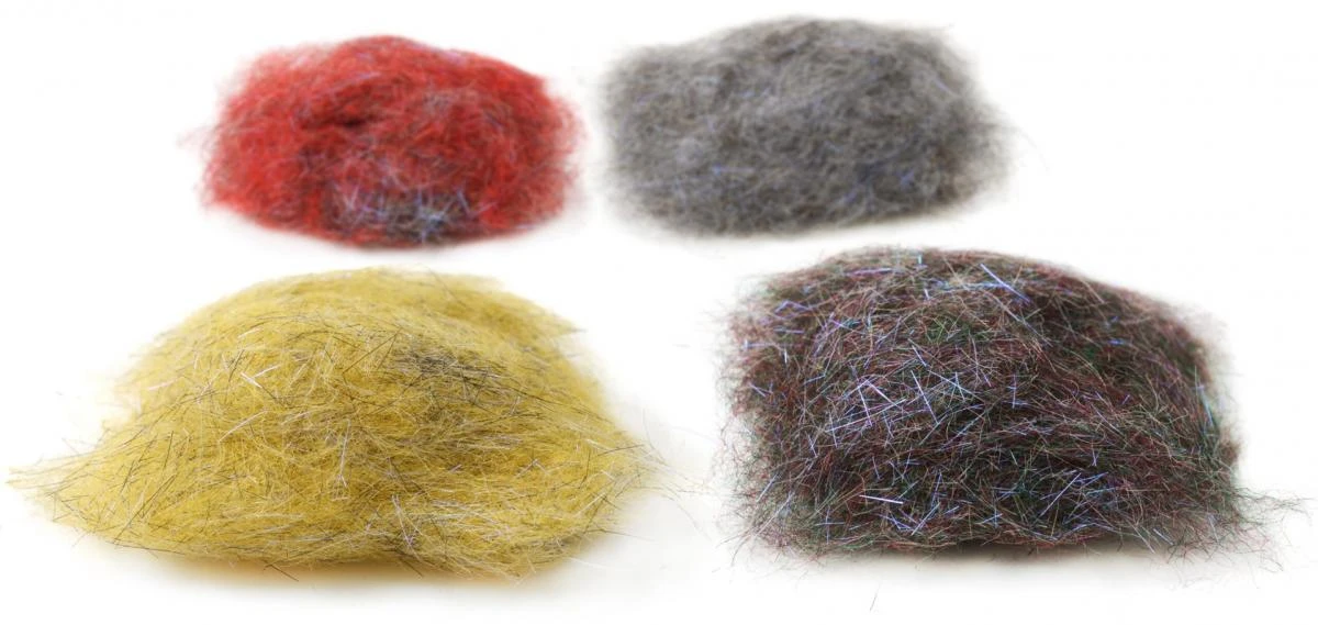 Ongeveer 1/2 inch – 2,5cm lengte vezels. Natuurlijke dubbing met exact de juiste hoeveelheid synthetische en UV flash toegevoegd.