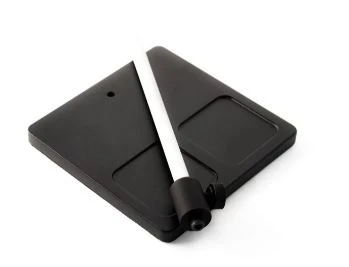 The Streamer Pedestal Base weighs about 5 pounds, it measures 3/8″ x 6″ x 8″. it has 2 magnetized pockets, a large pocket, and a measuring indicator. includes the Std Stem Support. Different colors available, visit the Streamer Pedestal Base page for details.