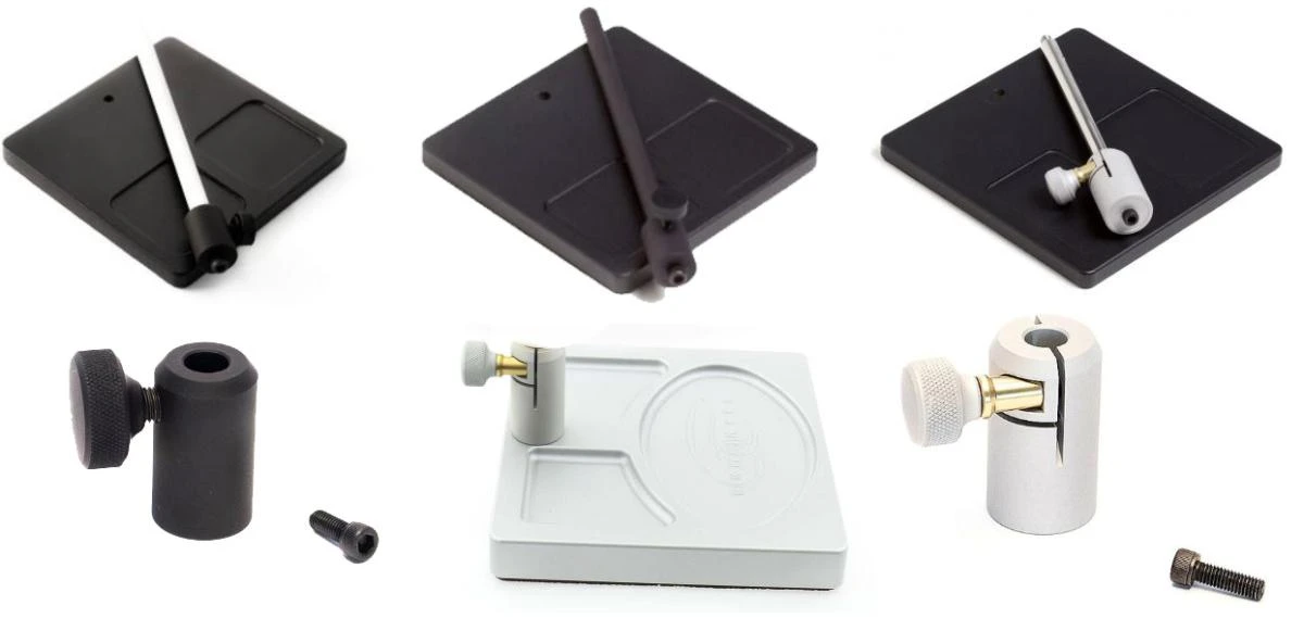 All Renzetti Pedestal Bases come with stem support and a 7″ stem which in some cases are specific to a particular vise. The Traveler/Tube Fly Base is 5″ x 5, weighs 2.5 lbs while all Presentations and Master Series Vises are 6″ x 6″, weighs 3.5lbs.
