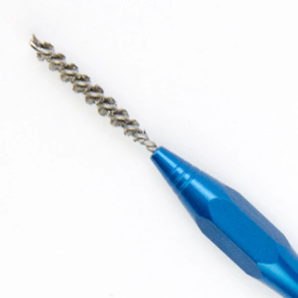 This ergonomic formed dubbing brush looks good and works perfectly. It is made of anodized aluminiun and a steel brush. This fly tying tool will last for your whole life and helps you to brush out dubbing, hairs and tons of other materials.