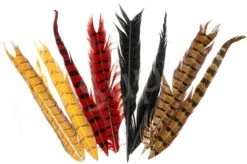 The tail feathers provide tails for Mayflies, wet flies and legs for many patterns.