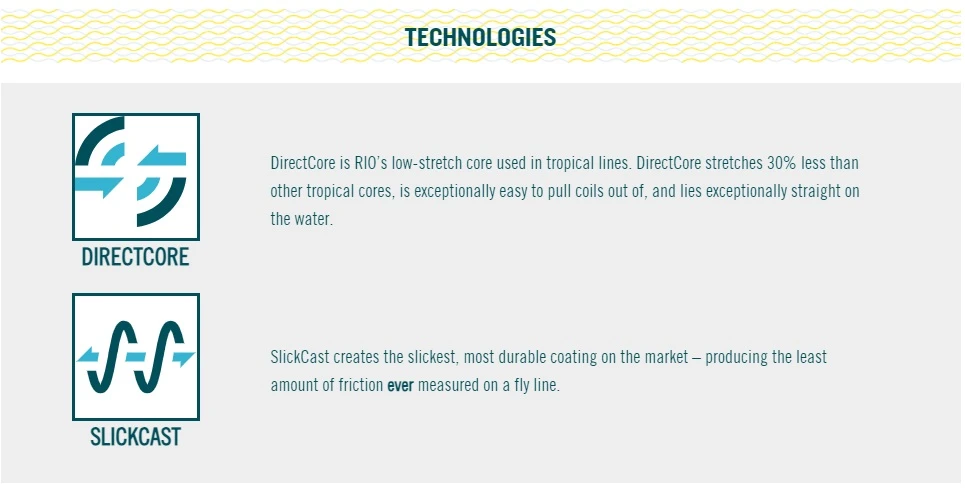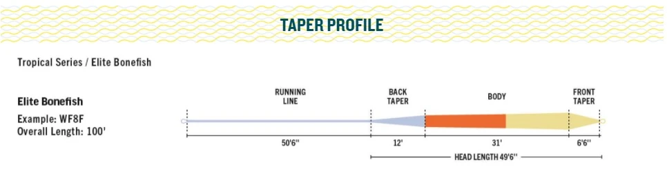 De RIO Products Elite Bonefish Floating Fly Line Sand/Orange/Blue heeft een lange buik en back taper om nauwe lussen te kunnen werpen en om lange, efficiënte worpen te maken, terwijl de gemiddelde lengte front taper gemakkelijk overslaat voor een goede presentatie van typische bonefish-vliegen. Elke vliegenlijn is gebouwd op RIO Products’ DirectCore met nauwelijks geheugen, de lijn is uiterst gemakkelijk te strekken is en deze ligt perfect recht op het water, maar behoudt de stijfheid die nodig is om te werpen onder warme omstandigheden. Bovendien is deze vliegenlijn gebouwd met SlickCast, de gladste, meest duurzame coating op de markt – met de minste hoeveelheid wrijving ooit gemeten in een vliegenlijn.