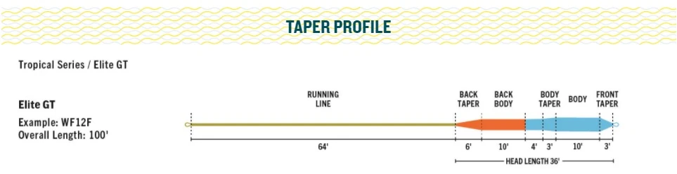 De RIO Products Elite GT Floating Fly Line Blue/Orange/Sea Grass is de perfecte vliegenlijn voor het achtervolgen van GT’s met ultra-slick prestaties en nauwelijks rek.