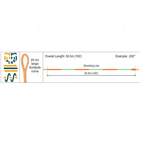 - 20 cm lange, naadloze lus aan de achterzijde – een nette, sterke lus achteraan de lijn waarmee de vliegenlijn en volglijn snel gewisseld kunnen worden