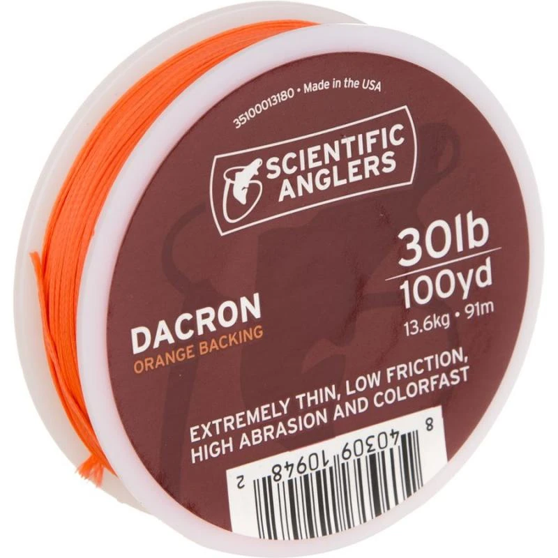 Backing verbindt niet alleen je vliegenlijn met je vliegenreel, het biedt ook een verzekering voor die super snelle en krachtige runs van steelhead, bonefish of karper. De Scientific Anglers Dacron Backing Orange biedt een dunne diameter, hoge slijtvastheid en gemoedsrust, wetende dat de vis van je leven niet zal ontkomen deze keer.