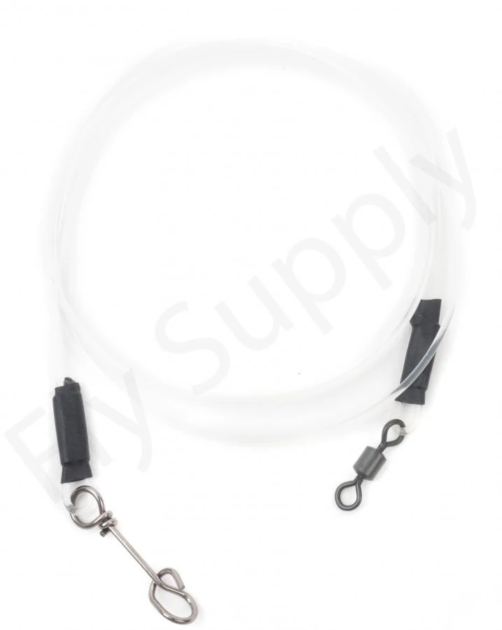 De onderlijn is voorzien van een Spro Matt Black Rolling Swivel size 2 met een trekkracht van 43KG. De Smartlures Fluorocarbon Pike Trace onderlijnen zijn verkrijgbaar met een oersterke Mustad Fastach clip in de maat 2, 3 en 4. Maat #2 is goed voor streamers tot en maat #2/0 haak. Maat 3 is uitstekend tot en met haakmaat #3/0 en #4/0 en de maat 4 is geschikt tot en met haakmaat #8/0.
