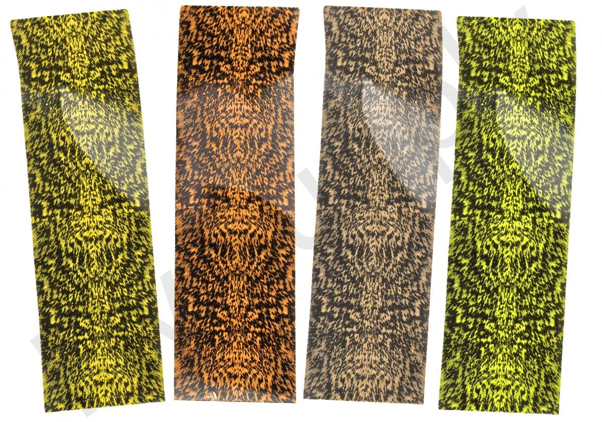 Het materiaal is gemakkelijk in de gewenste breedte te knippen. Toepassingen zijn onder andere nimf vleugels en ruggen voor scuds, sowbugs, crayfish en shrimps.