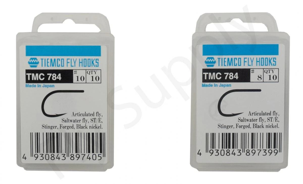 De Tiemco TMC 784 Saltwater Hooks zijn stingerhaken met rechte haakogen. Ook voor baars streamers, articulated streamers, zoutwater patronen en tube flies worden deze vlijmscherpe haken veel gebruikt.