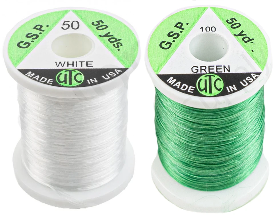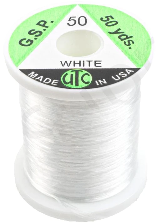De UTC GSP 10/0 Thread 50 denier is een 50 denier (10/0), extreem sterke vliegbinddraad dat vervaardigd is van gel-gesponnen polyethyleen (GSP). De UTC GSP 10/0 Thread 50 denier is de sterkste binddraad in verhouding tot de diameter en deze kan eventueel op kleur gebracht worden met watervaste viltstiften.