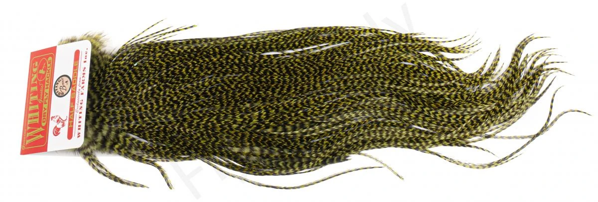 The ultimate dry fly hackles! The Whiting line has the stiffest, most dense hackle for tying the best floating dry flies in the world.
