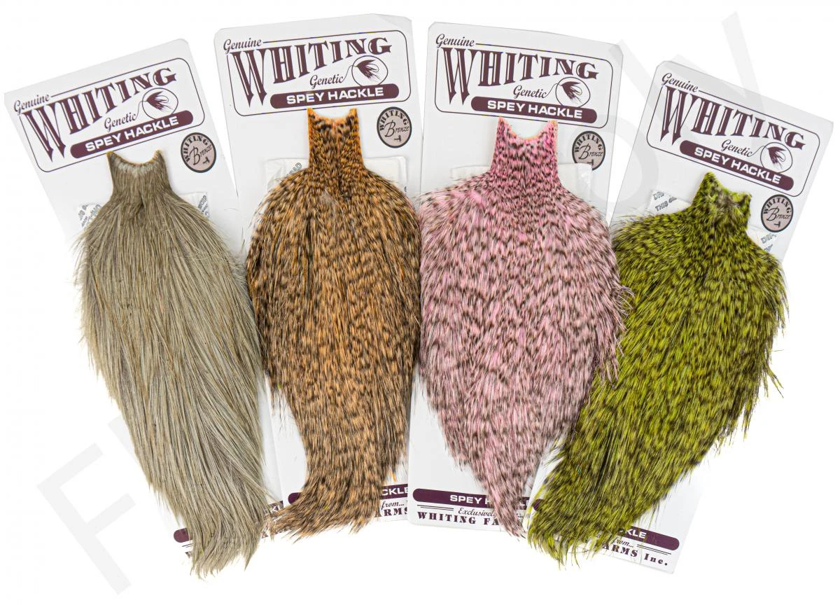 Er is weer een serie met prachtige Spey Capes van Whiting binnen gekomen in diverse kleuren. Perfect voor het binden van garnaal patronen, zalm vliegen en tube flies!