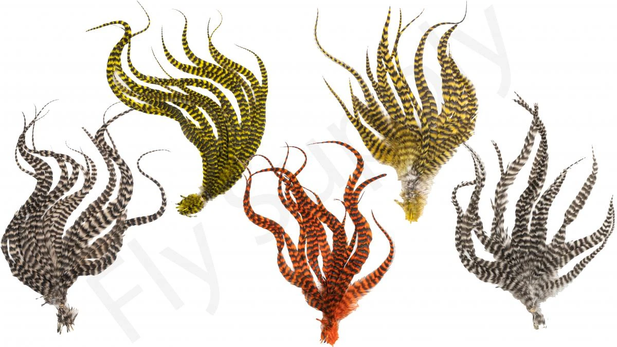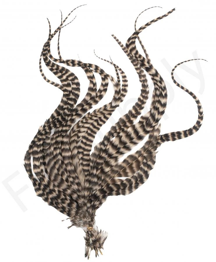 Iedere bundel heeft ongeveer 12 veren van de hoogste kwaliteit met een lengte tot 30cm. De bundels zijn beschikbaar in de populaire kleuren: Grizzly Natural, Grizzly Orange, Grizzly Golden, Grizzly Yellow & Grizzly Tan.