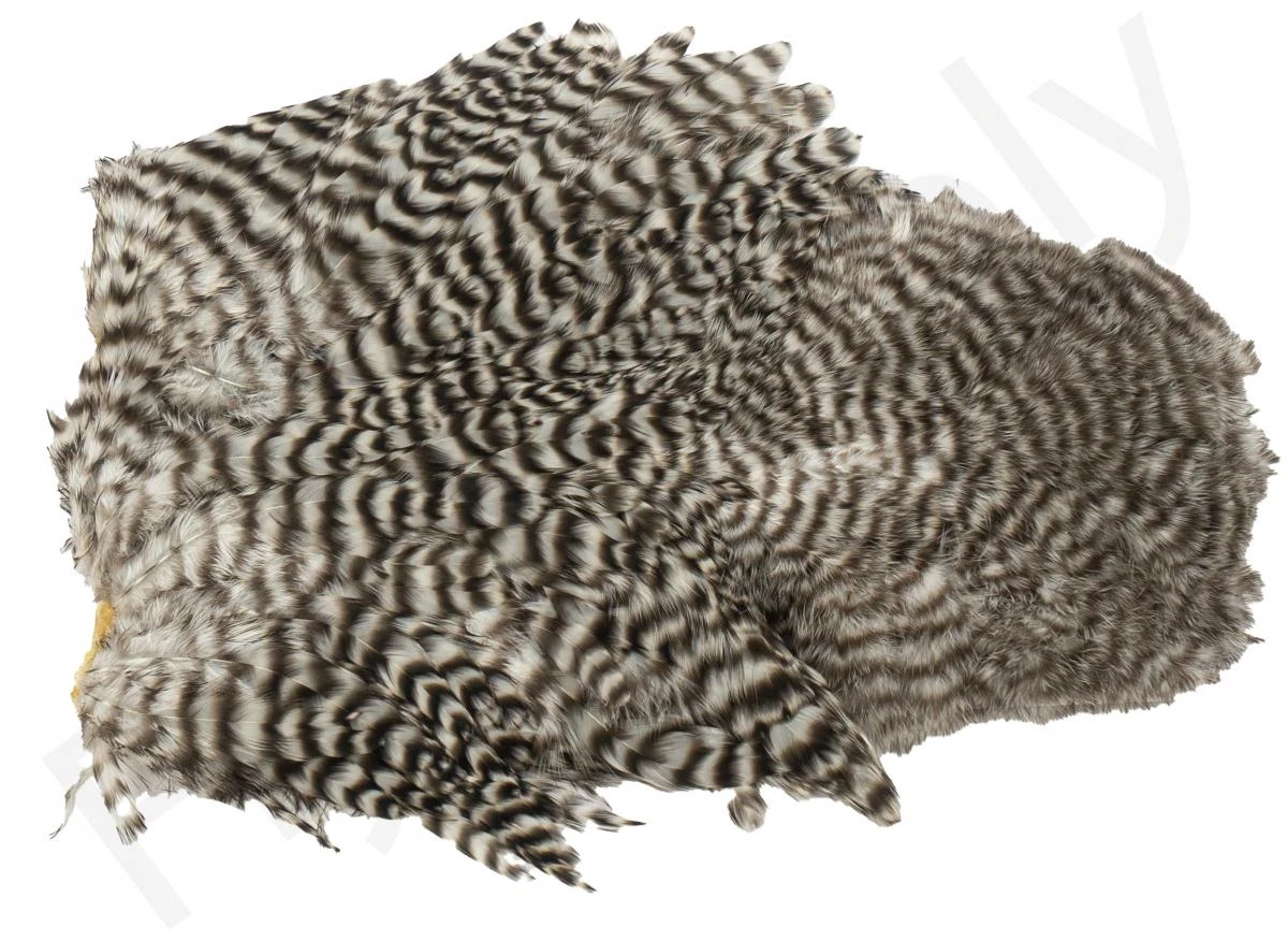 De bovenkant bevat zachte hackle veren die geschikt zijn voor Matuka & Sculpin type patronen en staarten van garnalenvliegen. Met zachte hackle veren kun je ook mooie halsbanden maken voor zalm- en zoutwatervliegen.