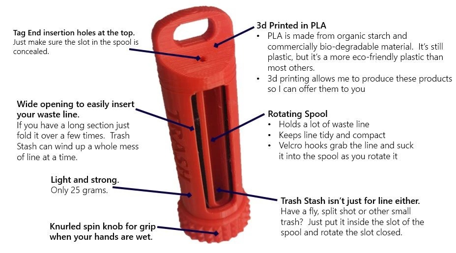 De Yamashita Trash Stash is een handig klein hulpmiddel dat al uw lijnafval opbergt tijdens het vissen. De Yamashita Trash Stash houdt jouw lijnafval netjes en bovenal opgeborgen om mee naar huis te nemen en daar snel en gemakkelijk weg te gooien. Zelfs wanneer je vergeet om het te legen tussen twee vistrips door, maak je geen zorgen, het houdt genoeg lijn vast.